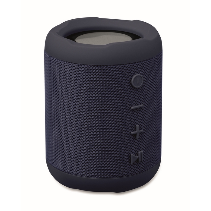Bezdrátový 5.0 reproduktor z ABS s RPET tkaninou. Obsahuje dobíjecí baterii Li-ION 800 mAh. Port pro SD kartu a kabel AUX/USB. Výstupní data: 5W, 3Ohm a 5V. Doba přehrávání cca 3h.Rozměry: 11 x 8,5 x 8,5cm