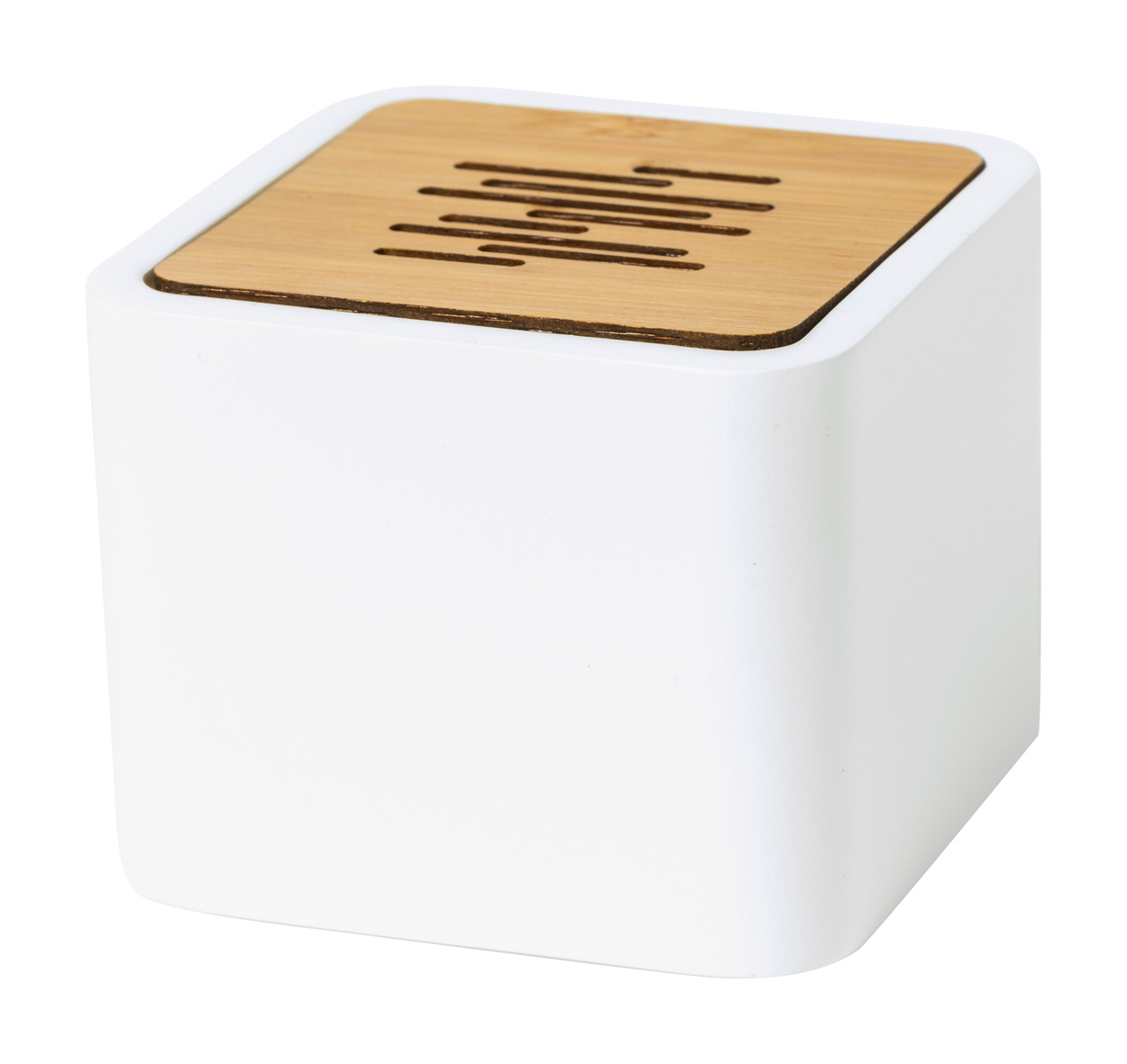 Bluetooth reproduktor v PLA plastu a bambusovém pouzdře. S funkcí hands-free volání a vestavěnou dobíjecí baterií. Včetně USB nabíjecího kabelu. Plastové díly jsou 100% kompostovatelné PLA. Rozměr: 65×65×52 mm