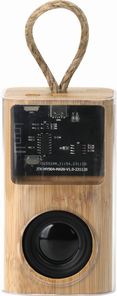 Bezdrátový reproduktor s průhledným krytem. Nabíjecí baterie 300mAh, výkon 3W. Nabíjecí kabel typu C je součástí balení. Čas nabíjení je přibližně 2 hodiny / čas přehrávání přibližně 1,5 hodiny. Rozměry: 5,7 x 4,3 x 9,7 cm