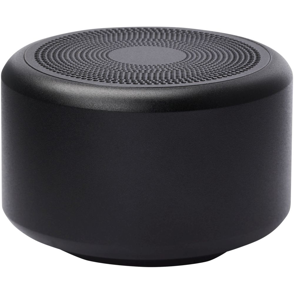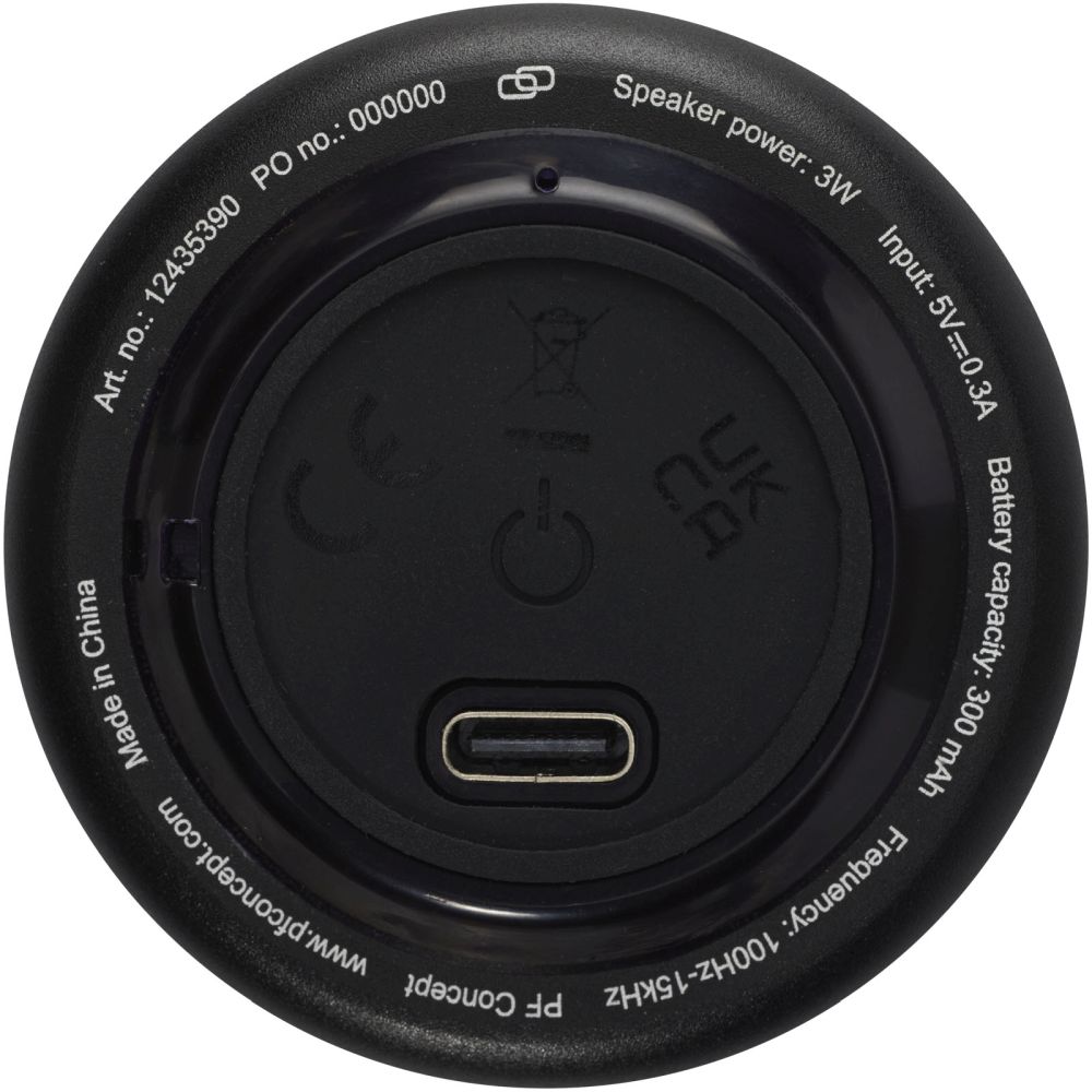 Stylový 3W Bluetooth® mini reproduktor z recyklovaného RCS zesílí vaši hudbu, podcasty atd. z jakéhokoli zařízení podporujícího připojení Bluetooth®. Díky malým rozměrům je ideální na cesty. Reproduktor je vybaven vestavěným ovládáním hudby a mikrofonem pro telefonní hovory a online schůzky. Bluetooth® 5.3 s pracovním dosahem přibližně 10 metrů. Užijte si díky 300mAh Li-ion baterii až 1,5 hodiny hudby při maximální hlasitosti. Doba nabíjení činí 1,5 hodiny. Dodáváno s uživatelskou příručkou, 30cm nabíjecím kabelem USB-A na USB-C a zabaleno v krabičce ze 100% recyklovaného kraftového papíru. Rozměry: 3,4 x O 5,1 cm.
