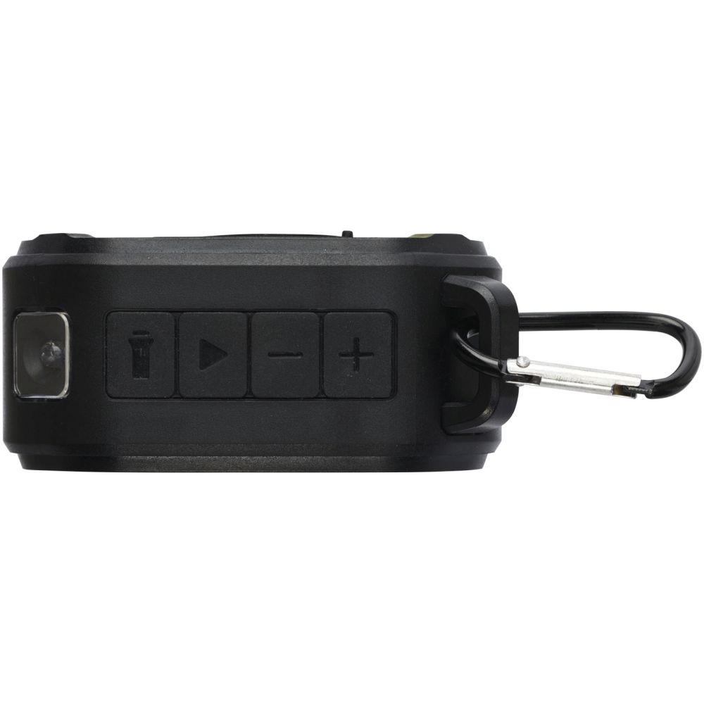 Dodejte své hudbě energii pomocí tohoto odolného solárního 3W Bluetooth® reproduktoru se svítilnou z recyklovaného RCS! Přehrává hudbu, podcasty atd. z jakéhokoli zařízení podporujícího technologii Bluetooth®, což z něj dělá ideálního společníka na cesty. Reproduktor obsahuje vestavěné ovládání hudby a mikrofon pro telefonní hovory na cestách a také praktickou svítilnu. Díky přiložené karabině jej lze snadno připevnit například na batoh a díky krytí IPX5 je reproduktor chráněn před silným deštěm. Díky 400 mAh Li-ion baterii si můžete vychutnat až 3–4 hodiny hudby při maximální hlasitosti. Doba nabíjení je 2 hodiny kabelem a přibližně 6 hodin solárním panelem (v závislosti na jasu/konzistenci slunečního světla). Doba výkonu svítilny je 10 hodin při vypnuté funkci reproduktoru. Bluetooth® 5.3 s pracovním dosahem přibližně 10 metrů. Dodáváno s uživatelskou příručkou a 30cm nabíjecím kabelem USB-A na Typ-C a zabaleno v krabičce ze 100% recyklovaného kraftového papíru. Rozměry: 9 x 4,2 x 9 cm.