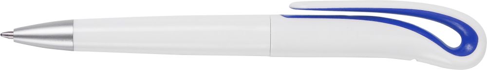 Bílá plastová propiska s černou n. a tm.modrým detailem
