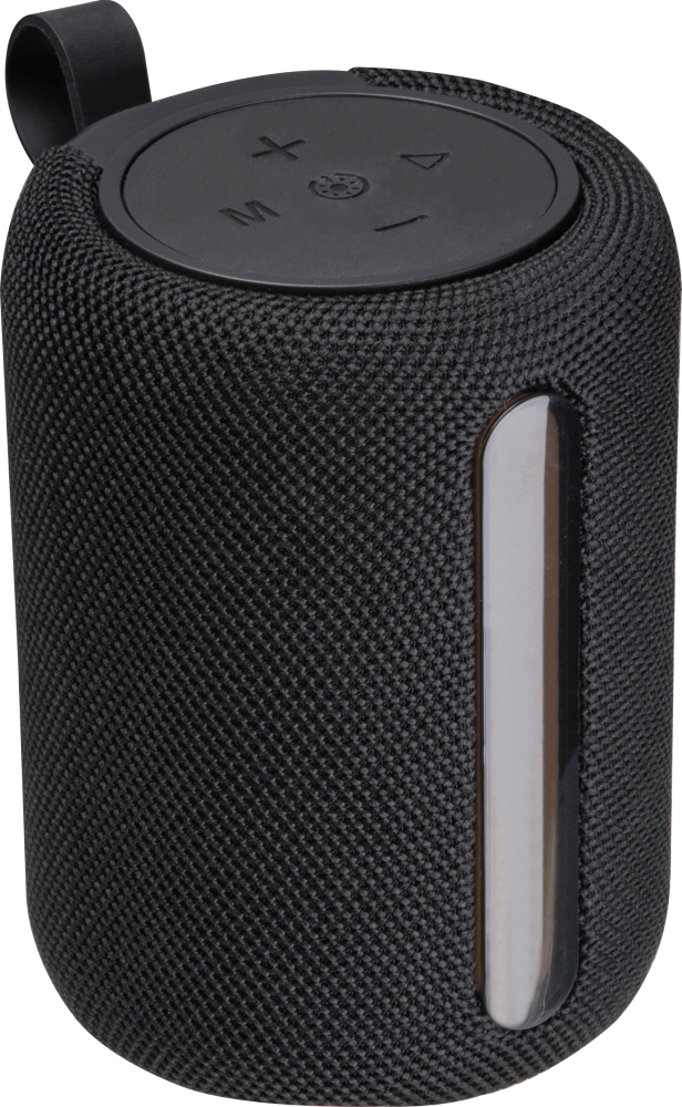 Bluetooth reproduktor (verze 5.3) ve válcovém tvaru s baterií 800mAh (5V), RGB LED světlem a nabíjecím kabelem. Připojení USB/Type-C, slot pro SD kartu a malé poutko pro snadné přenášení. Rozměry: o 8,2 x 11,5 cm