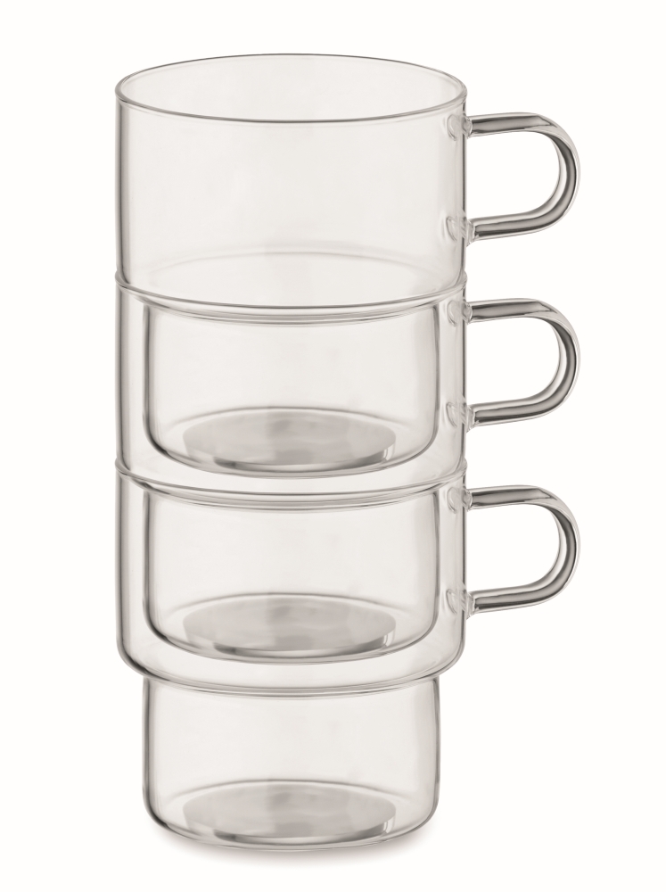 Stohovatelná sklenice z borosilikátového skla. Objem: 300 ml Rozměry: 10,5 x 8 cm