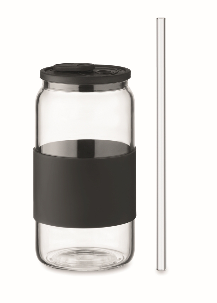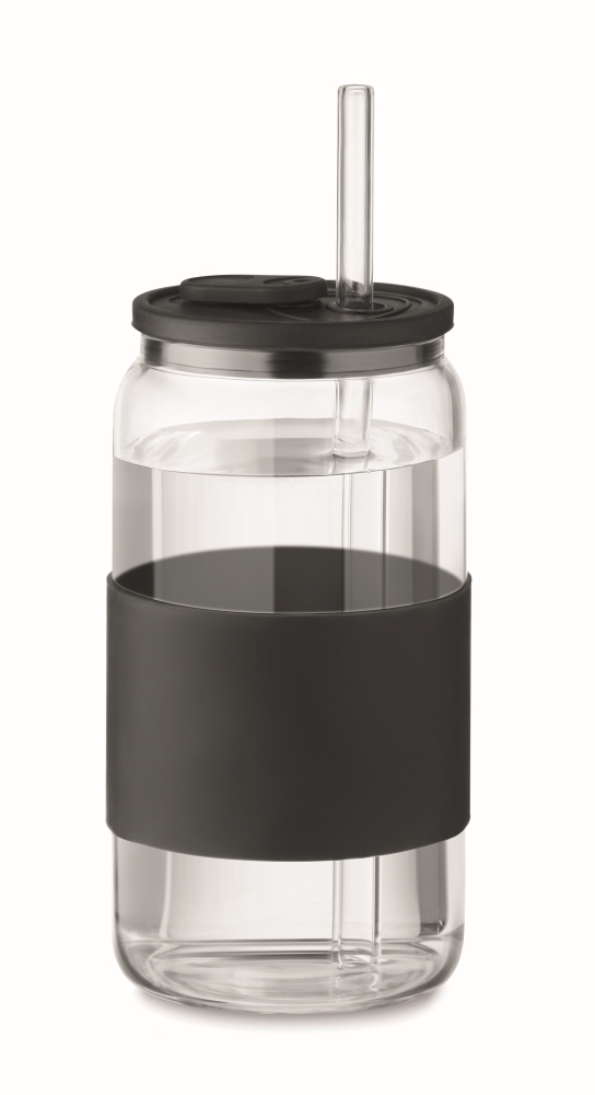 Sklenice z borosilikátového skla se silikonovým víčkem a úchytem. Včetně brčka z borosilikátového skla. Objem: 550 ml. Rozměry: O 7 x 15 cm