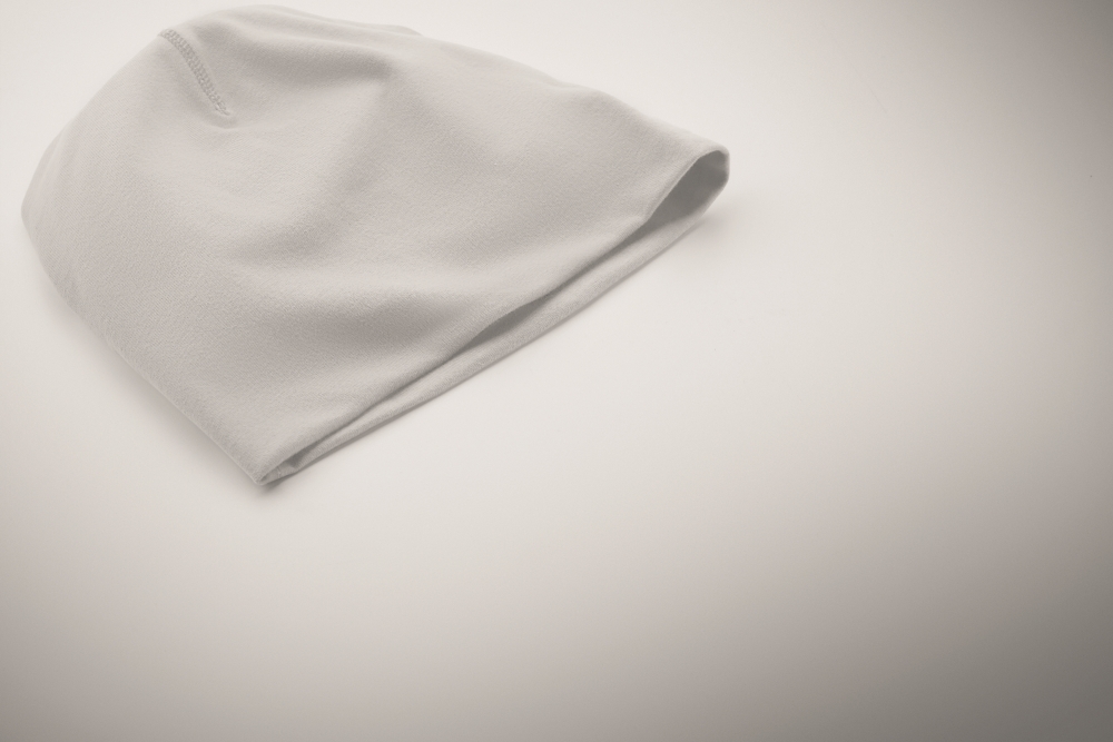 Čepice z polybavlny (95 % bavlny a 5 % spandexu) s gramáží 190 g/m2. Rozměry: 25 x 26 cm. Materiál: bavlna
