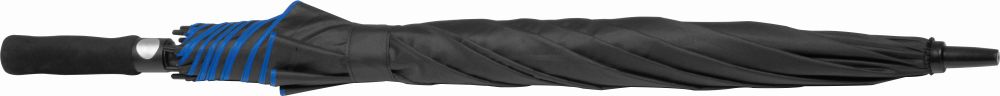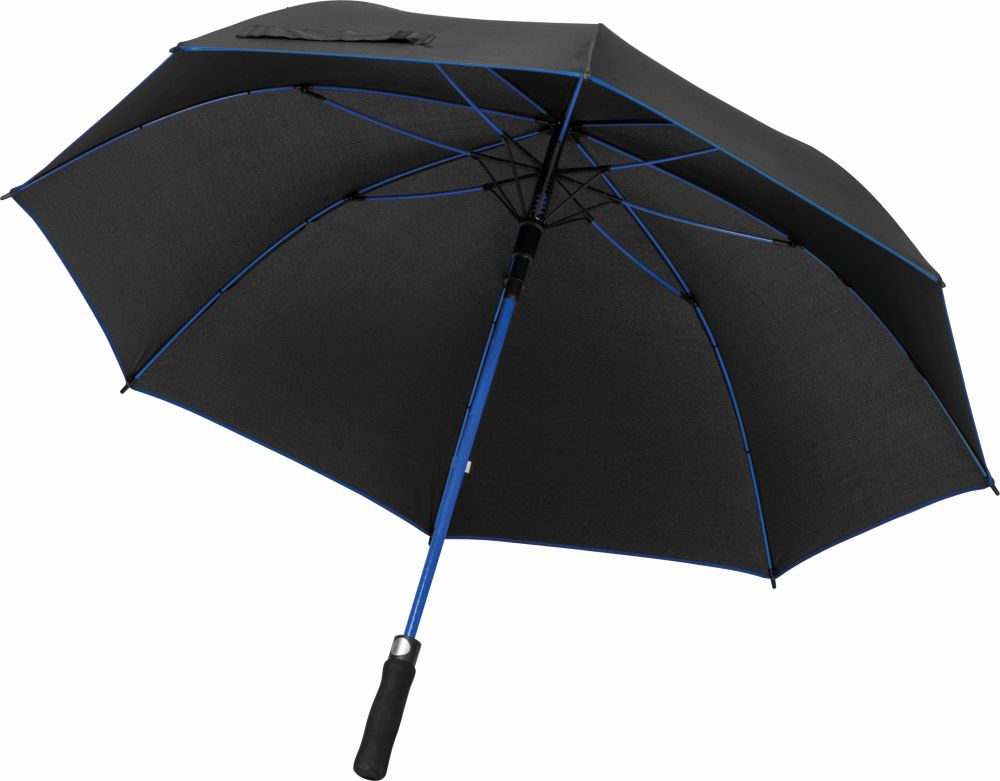 Černý deštník z polyesteru 190T s barevným lemem, automatickým otvíráním, kostrou ze skelných vláken a s měkkou rukojetí. Rozměry: o 120 x 93 cm