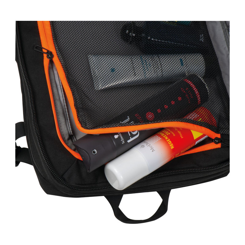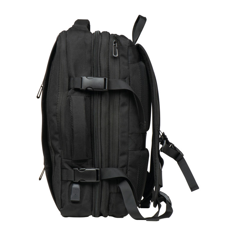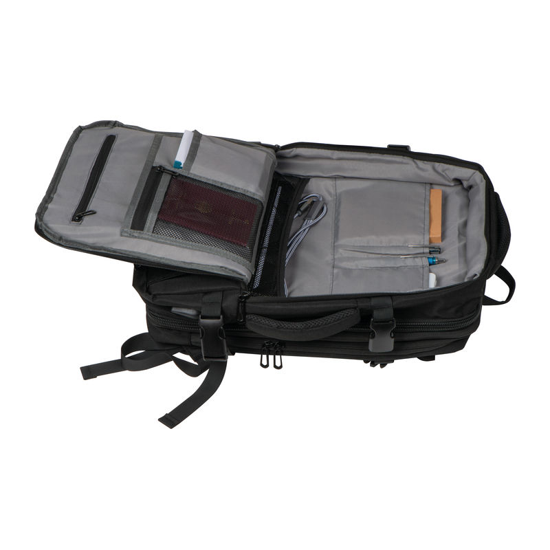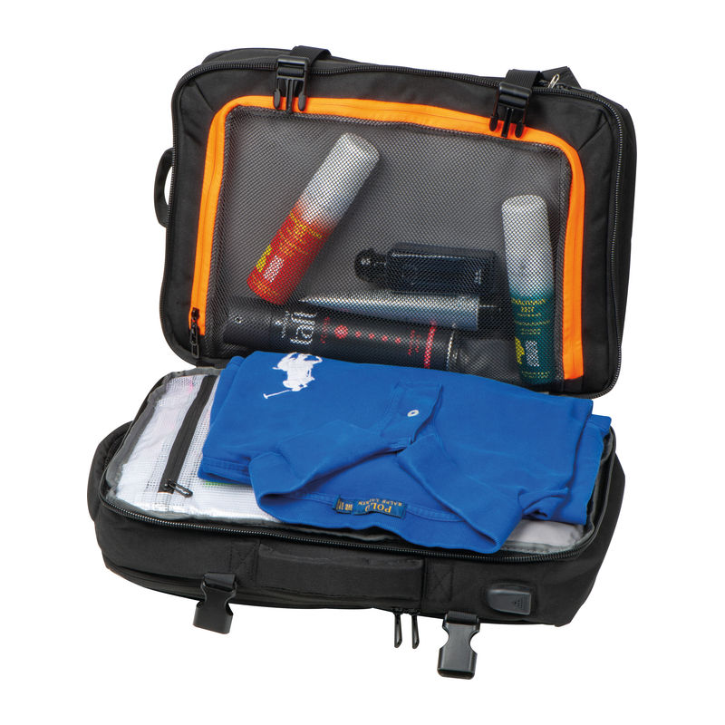 Cestovní batoh se třemi přihrádkami na zip. Uvnitř je přihrádka na notebook, několik menších přihrádek, přihrádka na mokré věci a přihrádka na kosmetiku. Objem batohu je od 22l do 37l a je nastavitelný pomocí popruhů. Rozměry: 30 x 20 x 45 cm