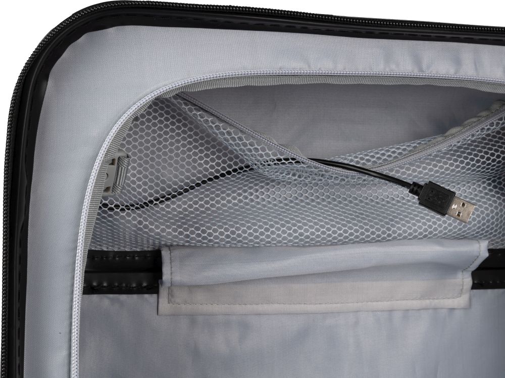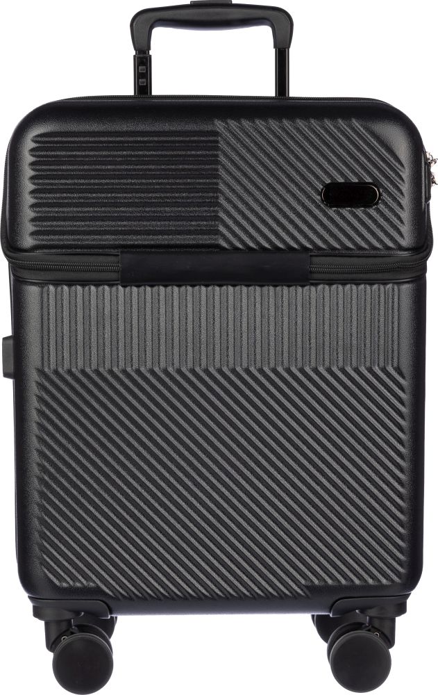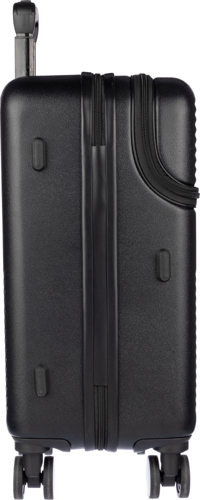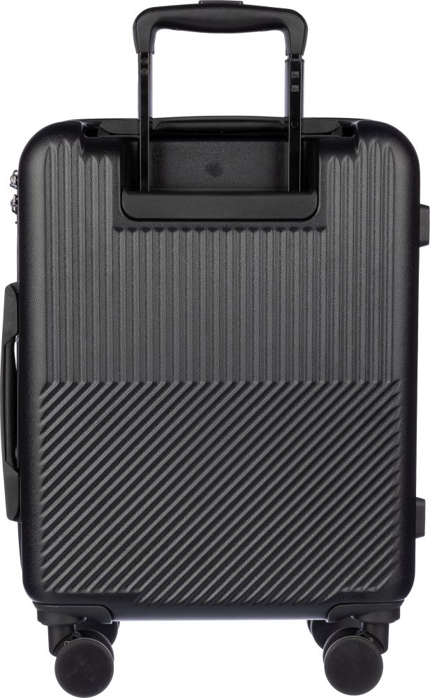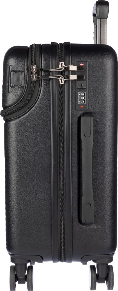 Plastový cestovní kufr s přední kapsou na laptop uzavíratelnou na zip. Kufr má 8 koleček, tříúrovňový systém rukojeti, číselný zámek a plíšek pro vylaserování Vašeho loga. Obsahuje USB port. Rozměry: 40 × 24 × 54 cm. Cena nezahrnuje recyklační poplatek..