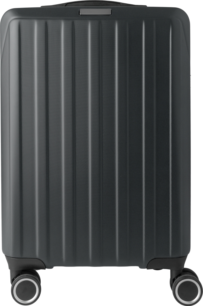 Cestovní kufr z ABS plastu o průměru 20 palců s tvrdou skořepinou, 8 kolečky (4x2) a tříúrovňovým kovovým madlem. Součástí je horní plastové madlo, kombinovaný zámek (bez TSA) a laserově gravírovaná destička s páskou 3M. Interiér je podšitý materiálem 210D a má tři přihrádky: kapsu na zip ve tvaru U, síťovanou kapsu a popruh ve tvaru X s přezkou. Objem: 30 l. Jednotlivě baleno v hnědé kartonové krabici. Rozměry: 35 x 19,5 x 56 cm