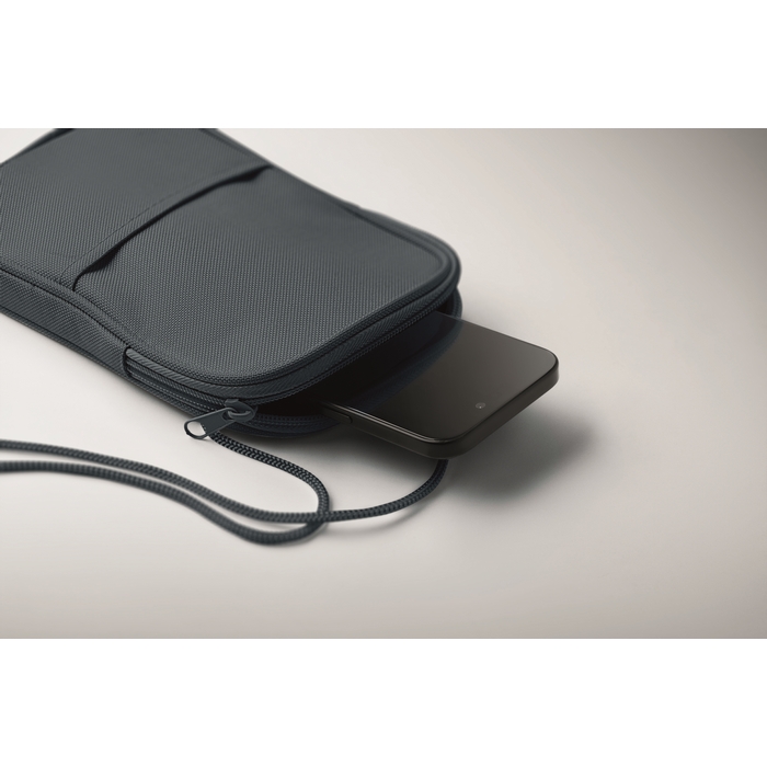 Cestovní pouzdro crossbody se sňůrkou. Vyrobeno z polyesteru 600D RPET s podšívkou z 210D RPET.Rozměry: 12,5 x 2 x 20cm