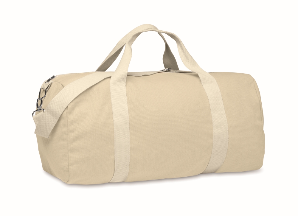 Sportovní taška z recyklovaných tkanin (60 % recyklovaná bavlna, 40 % recyklovaný polyester) 320 g/m2. S bavlněnými držadly a nastavitelným a odnímatelným ramenním popruhem. Rozměry: 49 x 26 x 24 cm