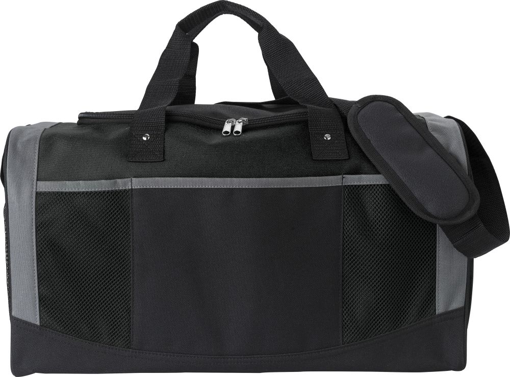Cestovní taška z 300D polyesteru s krátkými uchy a nastavitelným ramenním popruhem. Taška má jeden hlavní oddíl na zip, jednu boční síťovanou kapsu a 3 přední kapsy. Také má zpevněné dno. Rozměry: 49 x 28 x 24 cm