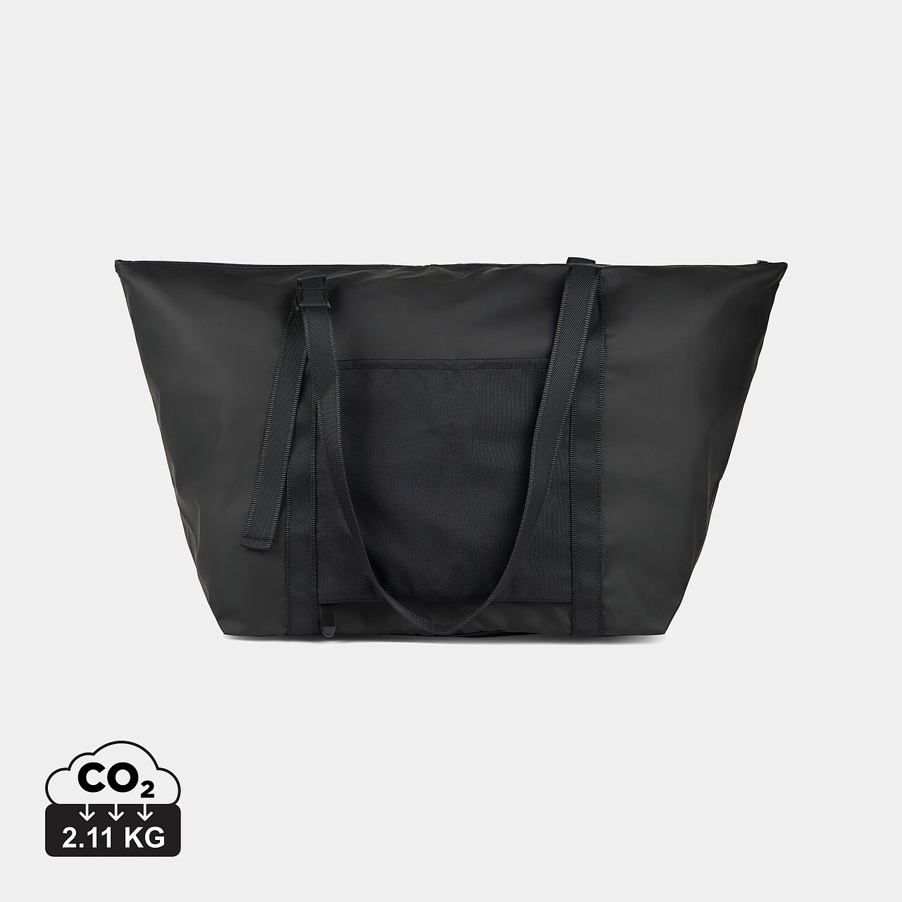Víkendová taška vyrobená z lehkého recyklovaného polyesteru s moderní PU povrchovou úpravou. Chytrá gumička a spona pro efektivní složení a snadný přenos. Přizpůsobitelné popruhy pro nošení v ruce nebo na rameni. Praktická vnější kapsa, kterou lze proměnit v popruh na madlo kufru pro pohodlné cestování bez extra závaží. Vyrobeno z GRS recyklovaného polyesteru. GRS (Global Recycle Standard) je globální standard, který umožňuje ověřit použití recyklovaného materiálu v produktu napříč celým dodavatelským řetězcem. Celkový podíl recyklátu dle váhy produktu: 52 %.
