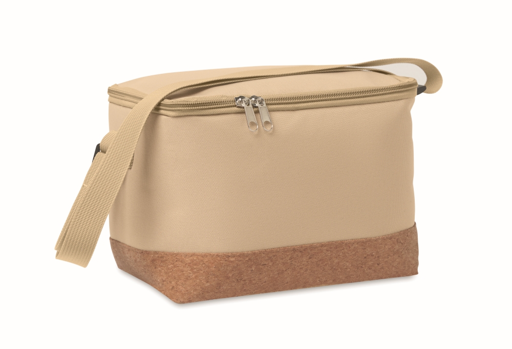 Chladicí taška z materiálu RPET 600D s korkovýn dnem. PEVA s 2mm PE pěnou. Objem 5 l. Rozměry: 22 x 14,5 x 17 cm