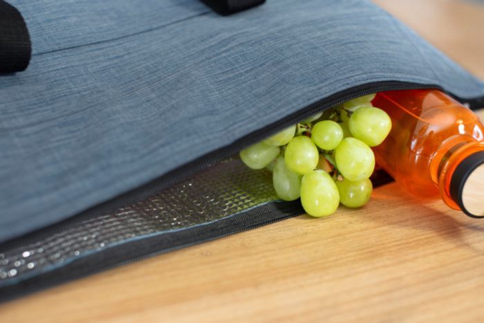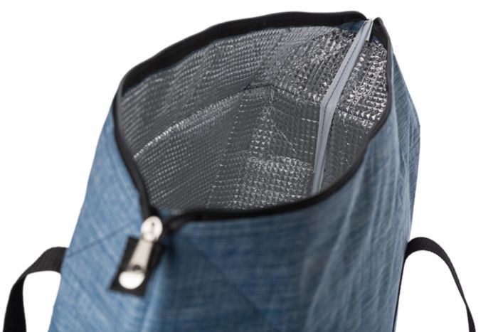 Chladicí taška z 600D polyesteru s vnitřní hliníkovou vrstvou. Taška obsahuje velkou přihrádku, jednu malou kapsu na přední straně a dva krátké nosné popruhy se zapínáním na suchý zip. Rozměry: 55 × 19 × 35 cm.