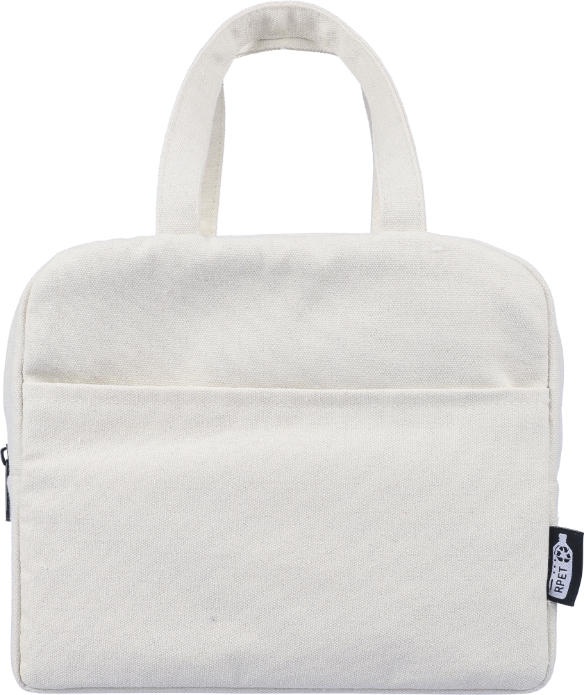 Chladicí taška z recyklované polybavlny (330 g/m2) s podšívkou z polyesteru 210D a polstrovaným vnitřkem z hliníkové fólie. Má objem 8 l, poutko na přenášení, sladěné detaily a nosnost 5 kg. Rozměry: 24 x 16 x 21 cm