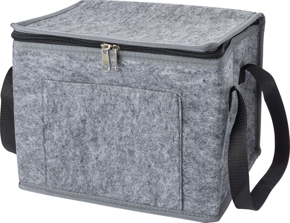 Chladicí taška vyrobená z RPET plsti s hliníkovou folií na vnitřní straně. Na přední straně má kapsu. Rozměry: 29 x 22 x 22 cm