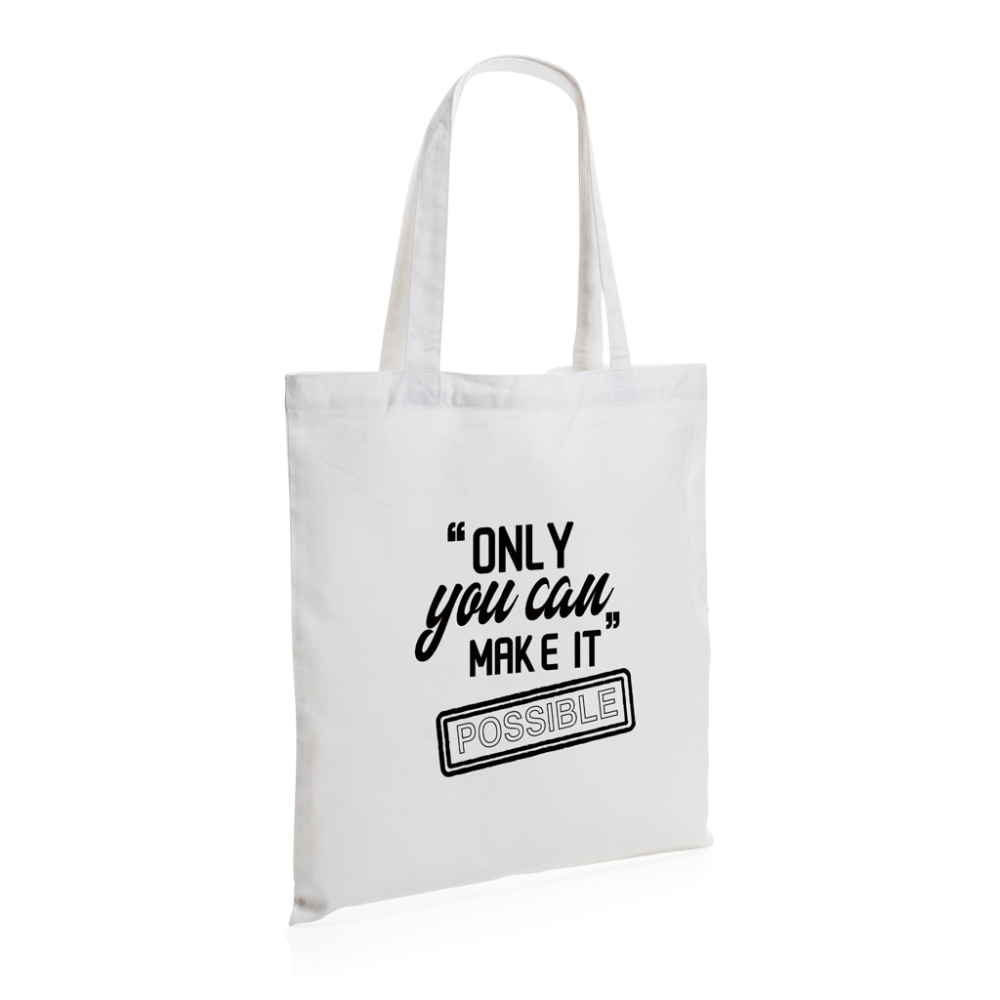 Čtvercová nákupní taška Impact AWARE™ z recyklované bavlny 145g, bílá