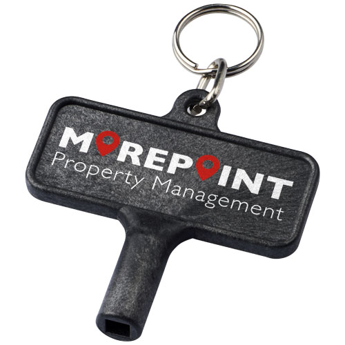 Montážní klíč na radiátory, měřidla a pouliční sloupy s kroužkem na klíče. Otvor má čtvercový tvar s 5 mm okraji. Rozměry: 6,1 x 5,8 cm