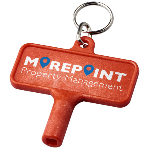 Montážní klíč na radiátory, měřidla a pouliční sloupy s kroužkem na klíče. Otvor má čtvercový tvar s 5 mm okraji. Rozměry: 6,1 x 5,8 cm