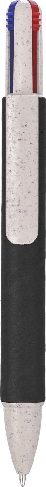 Čtyřbarevné kuličkové pero z recyklovaného kartonu a pšeničné slámy. Délka psaní cca 300 m od každé barvy. Modrá, černá, červená a zelená náplň. Rozměry: O 1,3 × 14,3 cm.