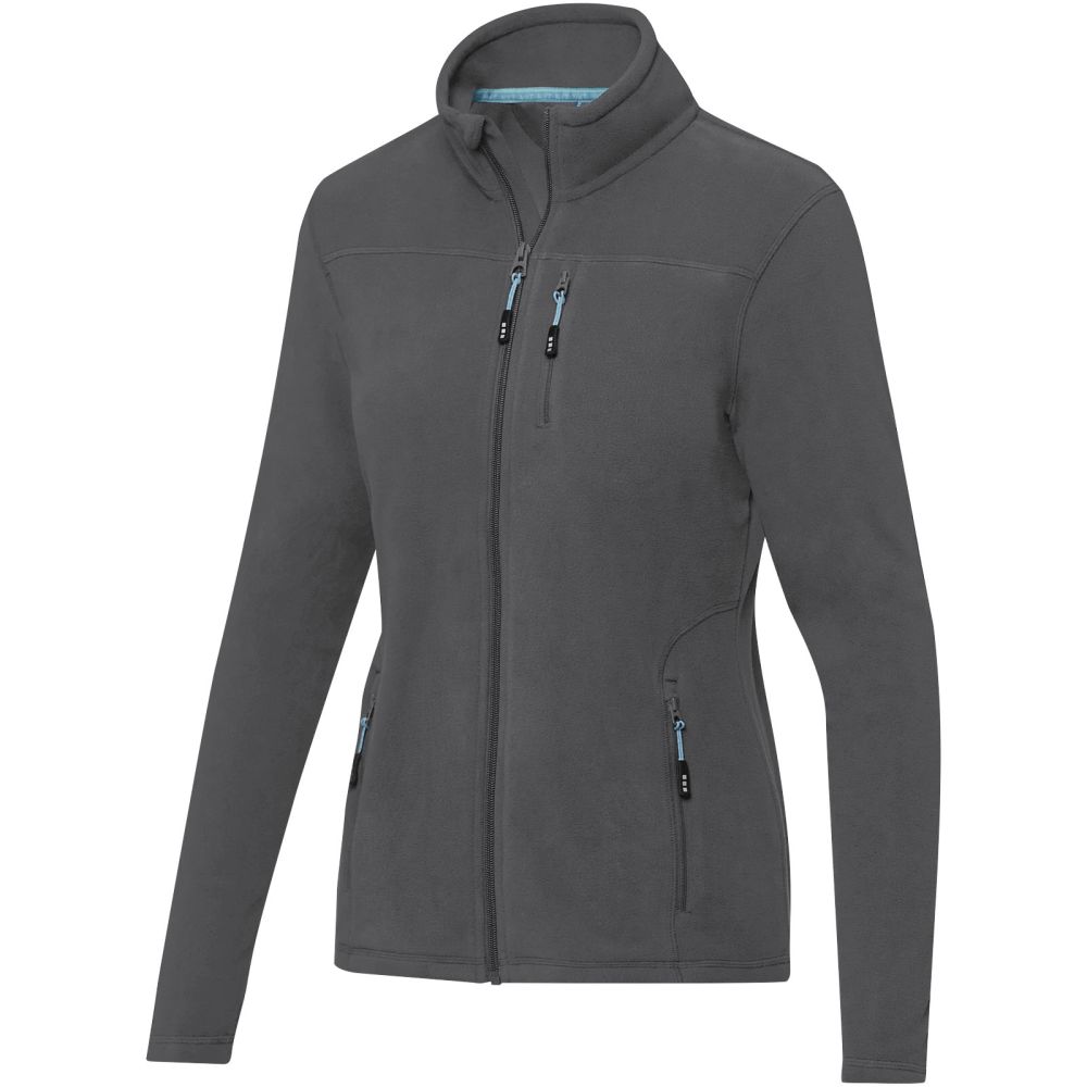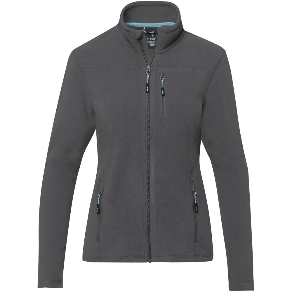 Dámská bunda z recyklovaného microfleecu, značka Elevate. Bunda je celorozepínací se stojacím límečkem, má recyklovaný středový přední zip GRS, vnitřní klopu s ochranou brady, přední kapsy se zipem, náprsní kapsu na zip, táhla zipů s příjemným povrchem, závěsné poutko. Micro fleece 100% GRS certifikovaný recyklovaný polyester, 174 g/m2.