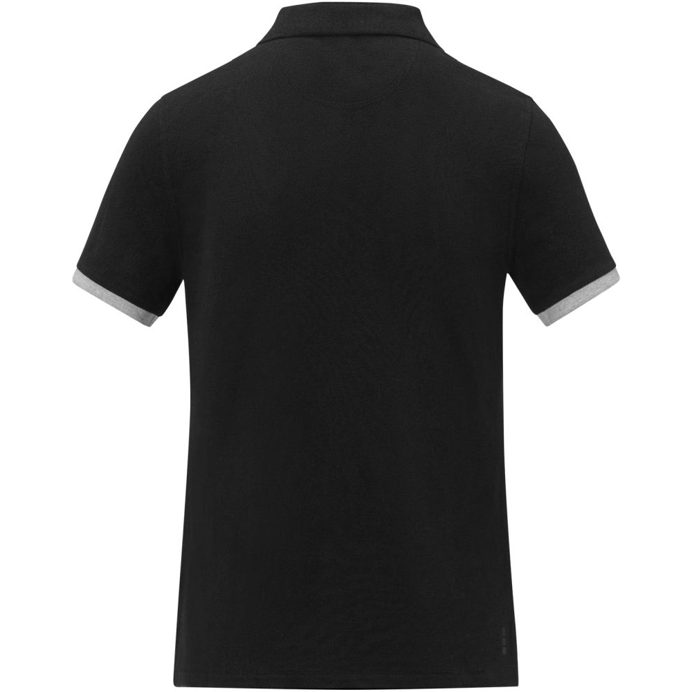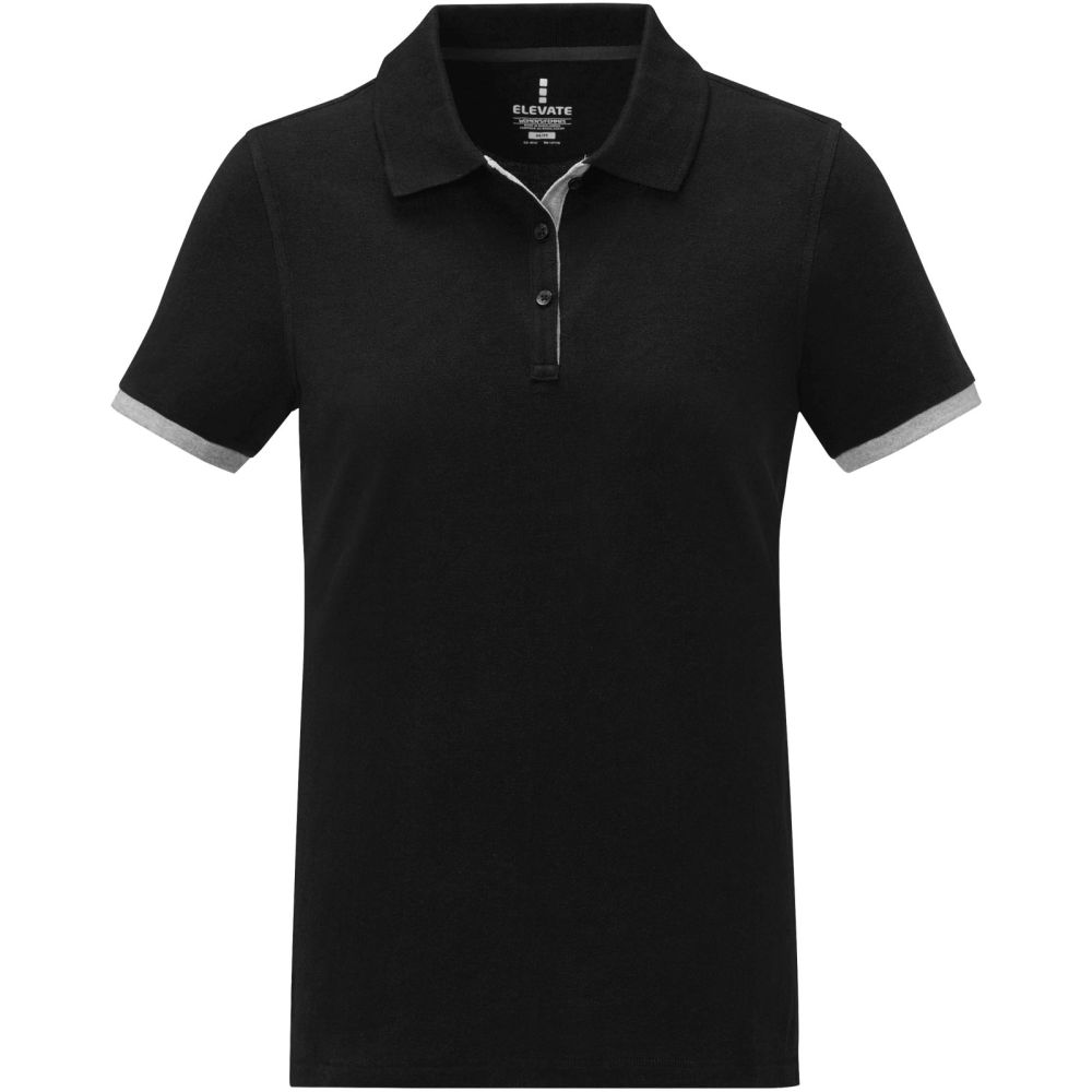 Dámská bavlněná polokošile s krátkým rukávem, značka Elevate. Polokošile je na tři gravírované knoflíčky, má plochý žebrový límeček, žebrový úplet manžetek, má kontrastní barevnou vnitřní légu a žebrované manžety, detaily s vyšívacím stehem, saténovou lemovku výstřihu, boční rozparky se saténovou lemovkou. Piké úplet 100% bavlna, 200 g/m2.