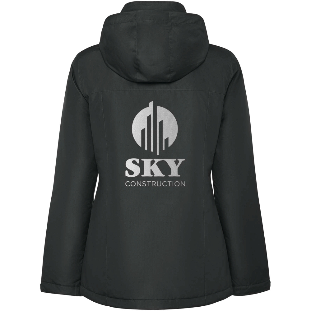Nepromokavá zateplená parka pro ženy. Slim-fit. Vysoký límec a zapínání na suchý zip. Praktická skládací kapuce. Centrální zip ladící s klopou. Boční kapsy se zipem a pevnou klopou. Vnitřní kapsa se zapínáním na suchý zip. Nastavitelné manžety s poutkem na opasek. Možnost přístupu k výztuhám na zádech a levé části hrudi.