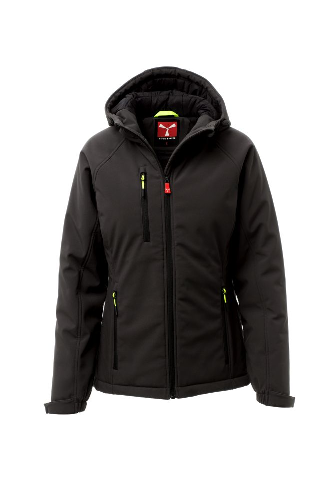 WP 8000 mm H2O, WVT 5000 g/m2 24h. Dámský zateplený softshell, zapínání na zip s kovovým jezdcem „semi-auto lock“ a přizpůsobeným taháčkem. Neodnímatelná kapuce se stahovací šňůrkou. Elastické stahovací manžety na suchý zip. Dvě boční kapsy a jedna kapsa na hrudi na zip. Fluorescenční taháčky. Dvě vnitřní kapsy: jedna tvarovaná na zip a jedna na tablet se zapínáním na suchý zip. Spodní část stažitelná pomocí přizpůsobených zarážek.