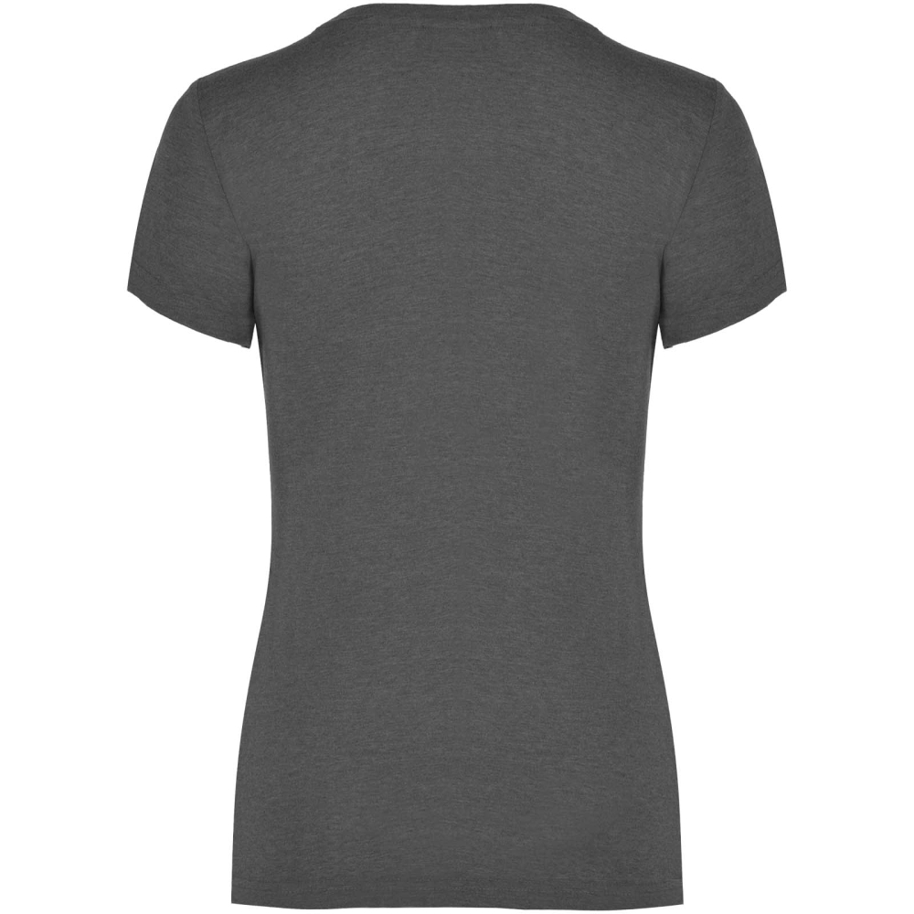 Tričko s krátkým a melírovým efektem. Přiléhavý střih. 1×1 žebrovaný výstřih ke krku s vnitřními zesílenými krytými švy. Trubková tkanina. Odnímatelný štítek.