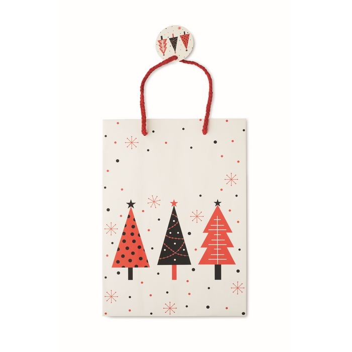 Střední vánoční dárková papírová taška (30 % recyklovaná) s visačkou. 150 g/m2. Rozměry: 22 x 11 x 30cm