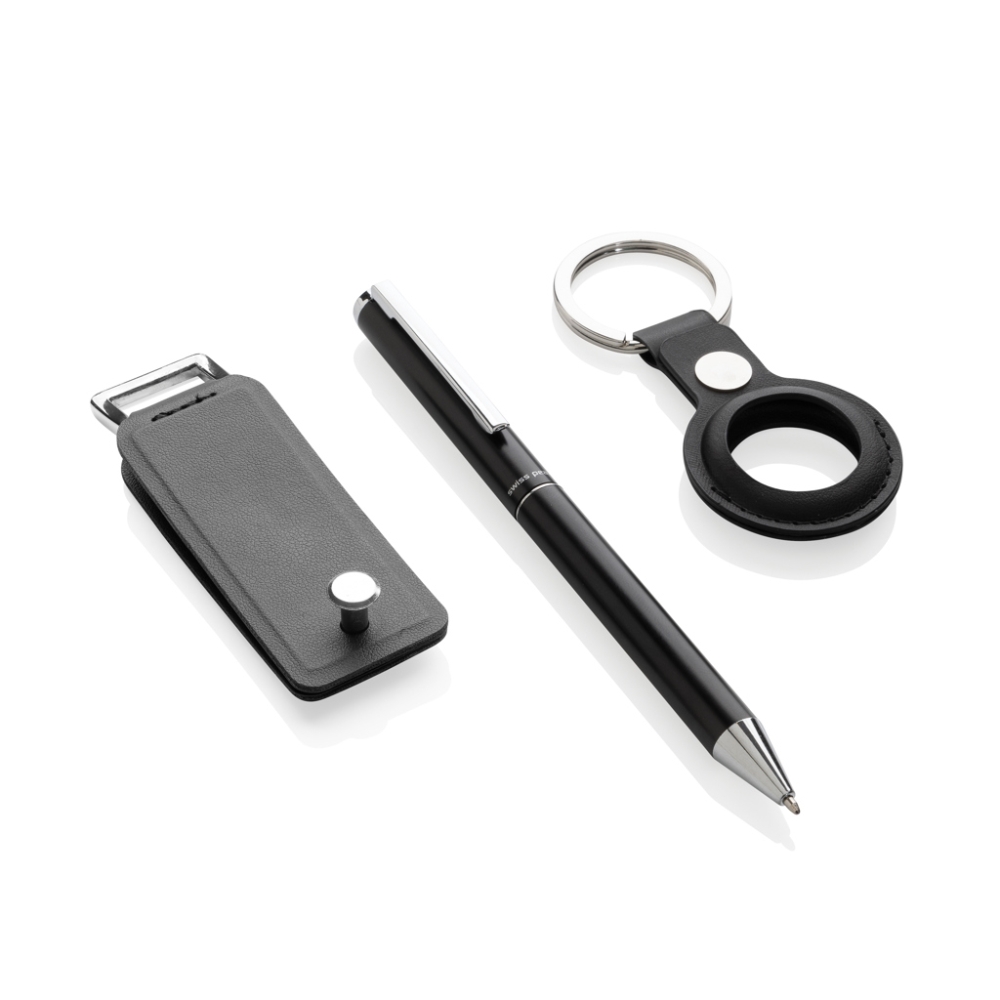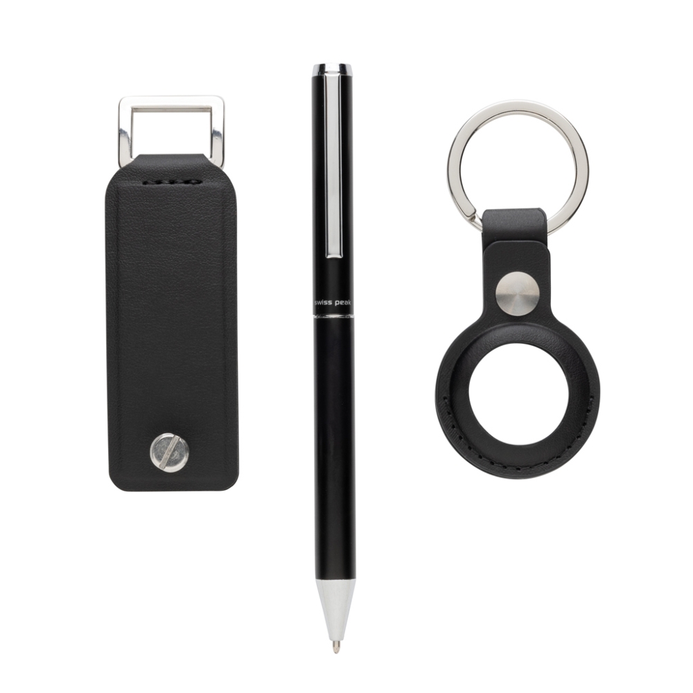 Dokonalé organizační trio: elegantní Swiss Peak Tula certifikovaný organizér klíčů RCS, praktický držák AirTag a pero z recyklovaného hliníku. Organizér klíčů udržuje vaše klíče pod kontrolou (maximálně 4 klíče), zatímco držák AirTag zajistí přehled o vaš