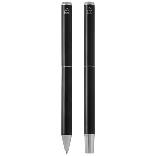 Dárková sada kuličkového pera a rolleru z recyklovaného hliníku, černá náplň, černá