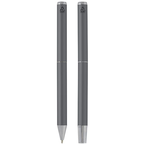 Dárková sada kuličkového pera a rolleru z recyklovaného hliníku, černá náplň, šedá
