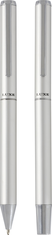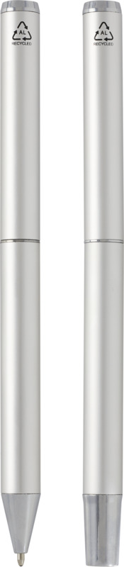 Dárková sada kuličkového pera a rolleru z recyklovaného hliníku, černá náplň, stříbrná - reklamní předměty