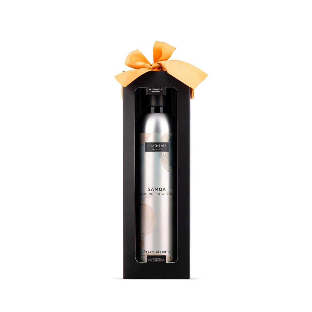 Dárkové balení luxusní sprchové pěny značky Treatments® v elegantní krabičce s mašličkou. Vůně Samoa. Rozměry: 5,5 x 8 x 25,5 cm