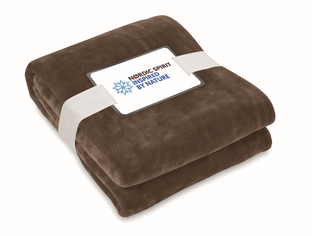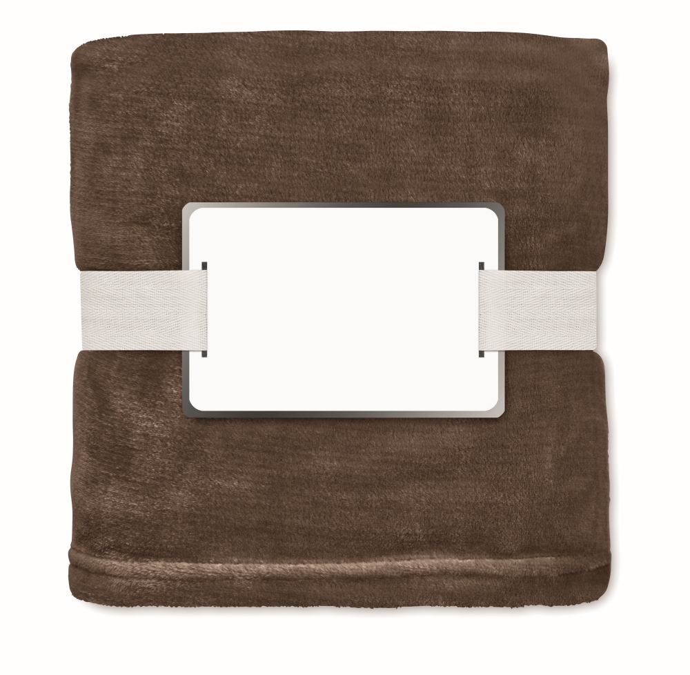 Fleecová deka RPET o gramáži 280 gr/m2, přebalená stuhou s kartičkou pro potisk. Rozměry: 120 x 150 cm. Materiál: RPET