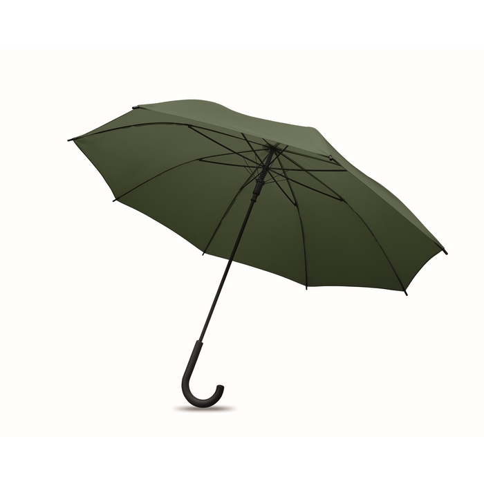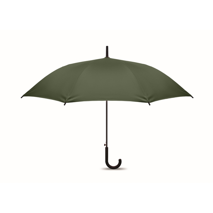 Deštník 23 palců s automatickým otvíráním. Černě pokovená konstrukce, žebra ze skelných vláken a panely z tkaniny 190T pongee. Plastové špičky a vršek. Pogumovaná ohnutá rukojeť z PP plastu. Manuální zavírání.Rozměry: 58,5cm
