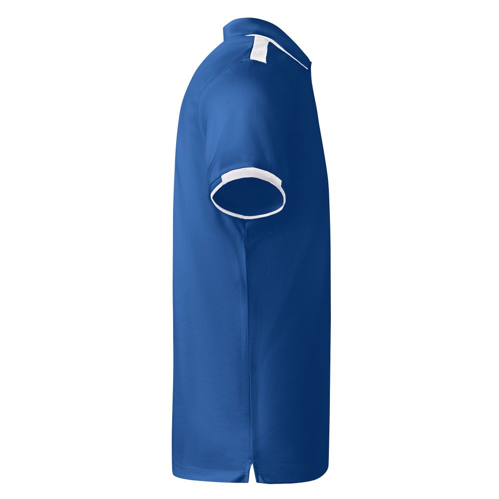 Antibakteriální látka z recyklovaného polyesteru. 1 × 1 žebrovaný límec a detail na rukávech. Zesílené kryté švy v límci. Zapínání na 2 skryté knoflíky. Kontrastní detaily a ramena. Boční rozparky na lemu. Odnímatelný štítek. Materiál: 100% polyester