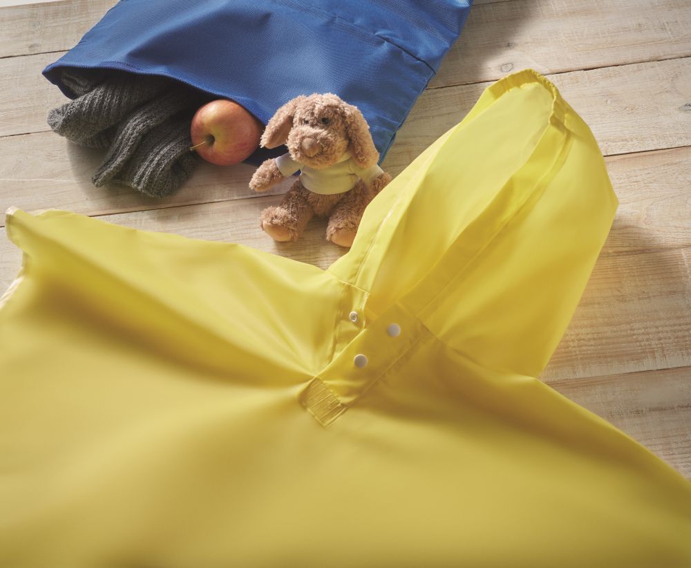 Dětská (2-5 let) pláštěnka s kapucí, vyrobená z PEVA. Zapínání na patentky. Rozměry: 87x79cm