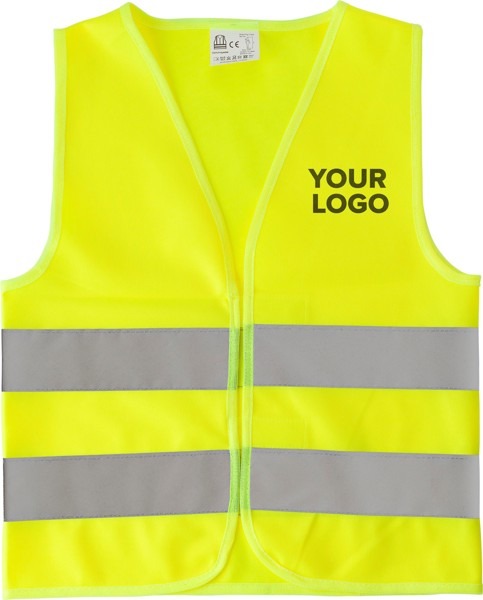 Dětská reflexní vesta, 100 % polyester. Doporučená technologie tisku: sítotisk S2. Maximální velikost tisku: 200 x 300 mm. Rozměry: 57 x 59 x 0,2 cm. Kartonové množství: 100