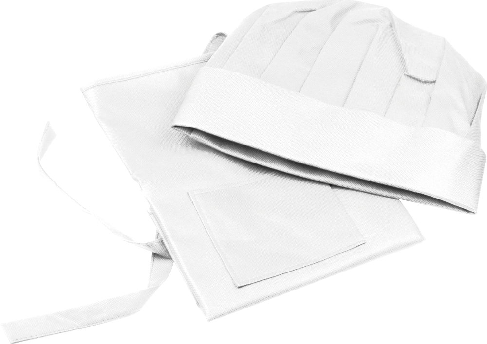 Dětský kuchařský set z netkaného materiálu (80 g/m2) sestávající z praktické kuchařské čepice a vhodné zástěry. Rozměry: 27 x 4 x 20 cm