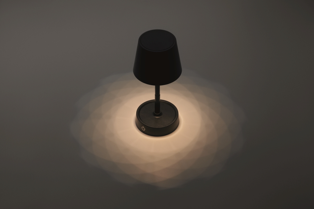 Plastová dobíjecí výsuvná USB stolní lampa s 12 LED světly s nastavitelnou intenzitou světla a plynulým stmíváním. Obsahuje vestavěnou baterii s kapacitou 1200 mAh. Výdrž baterie cca 6 hodin. Včetně nabíjecího kabelu USB Typ-A na Typ-C. Rozměry: O 10,6 × 28 cm. Cena nezahrnuje recyklační poplatek.