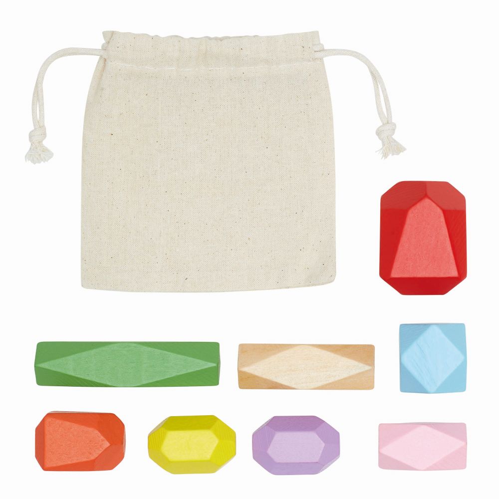 Dovednostní hra obsahující 8 barevných dřevěných hracích figurek v ekologickém bavlněném sáčku.Rozměry: 12 × 12 cm.