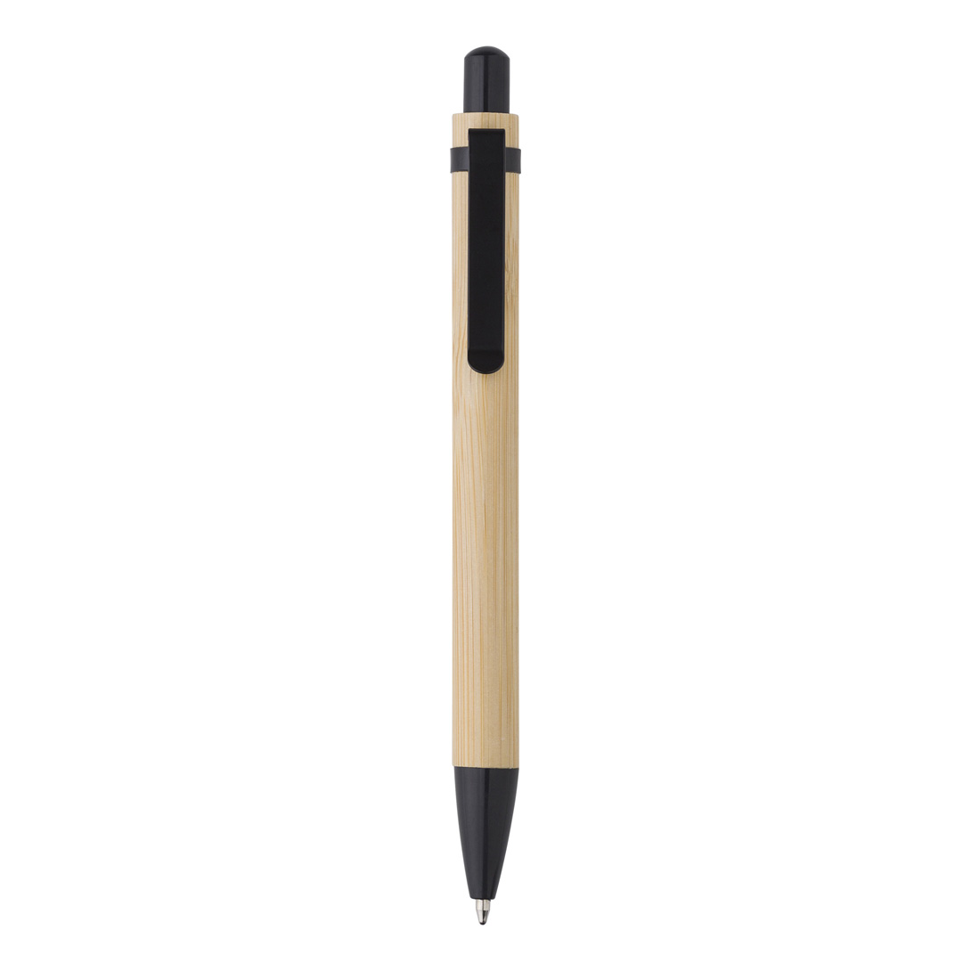FLAVIE Dřevěná propiska s kovovými detaily, modrá náplň, černá
