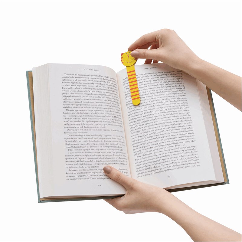 Dřevěná záložka do knížky se zvířátky a pravítkem. Motiv medvěda, ovce, žáby a kočky. Rozměry 12,8x2,8 cm. Vícebarevná.