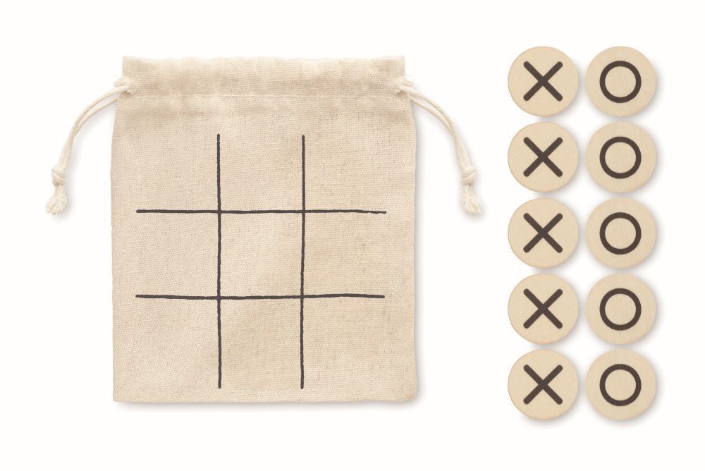 Dřevěné piškvorky / tic tac toe hra. Dodáváno v bavlněném sáčku. Rozměry: 13x14,9cm