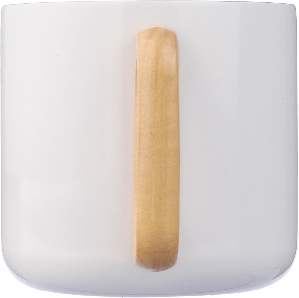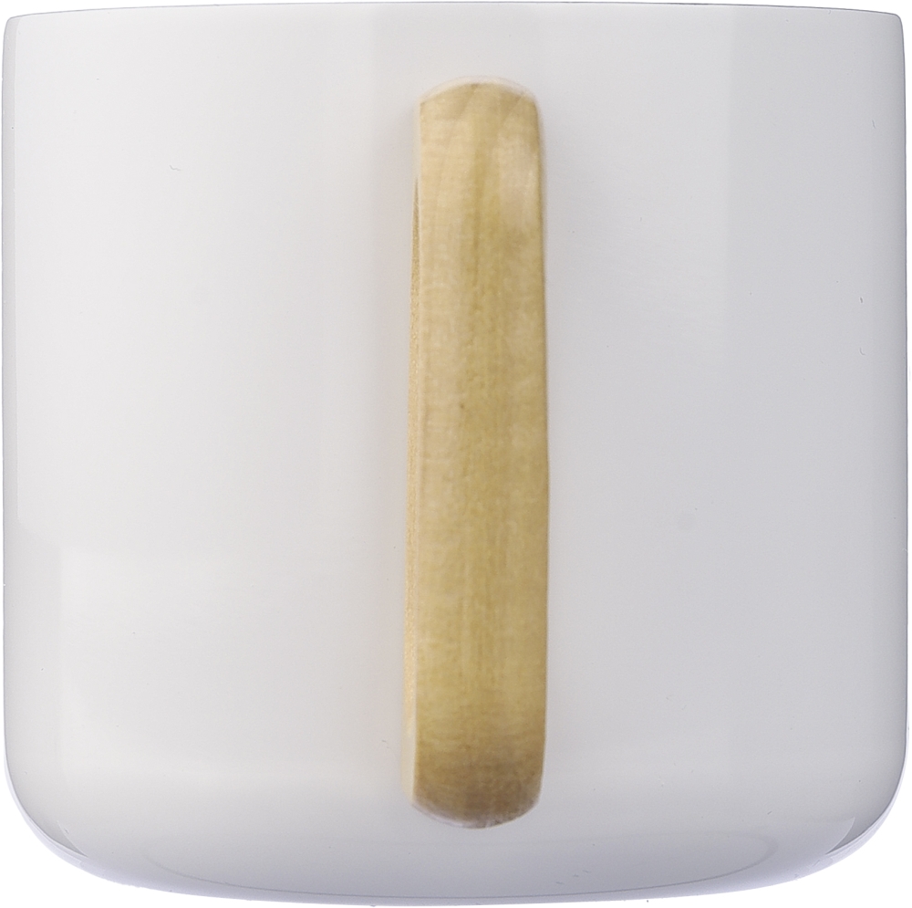 Dvoustěnný hrnek z recyklované nerezové oceli s dřevěnou rukojetí o objemu 400 ml. Nevhodný do myčky nádobí. Baleno v dárkové krabičce. Rozměry: O 8,7 × 11,3 × 8,2 cm.