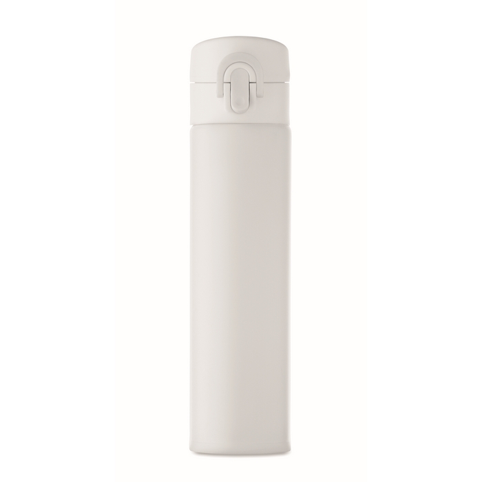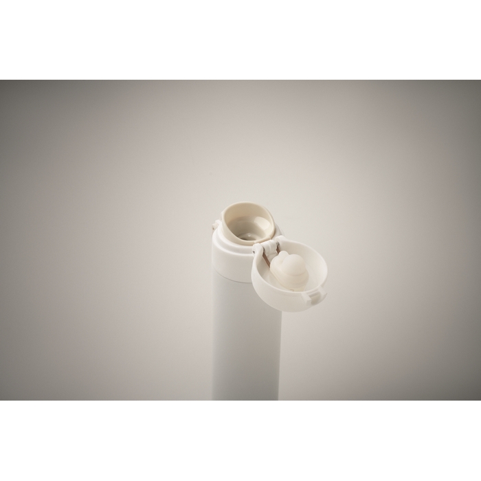 Dvoustěnná láhev na pití z recyklované nerezové oceli (90 % recyklované nerezové oceli a 10 % nerezové oceli) s bezpečnostním zámkem na víčku a možností otevírání stisknutím. Objem 300 ml.Rozměry: O5,8 x 22,7cm